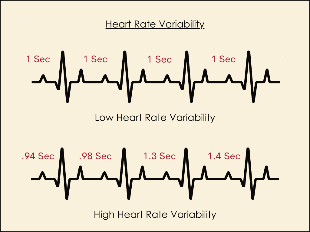 HRV measures the uniformity of our heartbeats. Flexibility in bodily systems, like the heart, is theorized to contribute to adaptability. However, under stress (physical or mental), the body shifts into "Fight or Flight" mode. Efficiency becomes the priority, making the heart beat more uniformly.